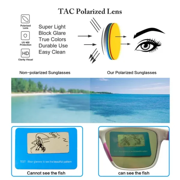 | Material: | TR90 frames, TAC Polarized lens UV400 protection coating |