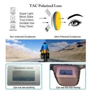 | Material: | TR90 frames, TAC Polarized lens UV400 protection coating |