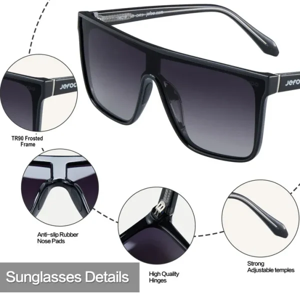 Experience the serene charm of Blyzeo oversized sunglasses, where elegance meets the vastness of the twilight sky. The polished black TR90 frame, reminiscent of a star at nightfall, supports black polarized lenses that tint the world with enigmatic. These lenses, much like the unwavering gaze of the evening, cut through the glare, offering clarity and protection. The flat-top design is crafted for comfort, with rubber nose pads ensuring a perfect fit, inviting you to wear them on long, contemplative journeys. These sunglasses elevate your perspective, exhibiting the essence of the elegance of a calm night, indispensable accessories that go with any of your outfits.
