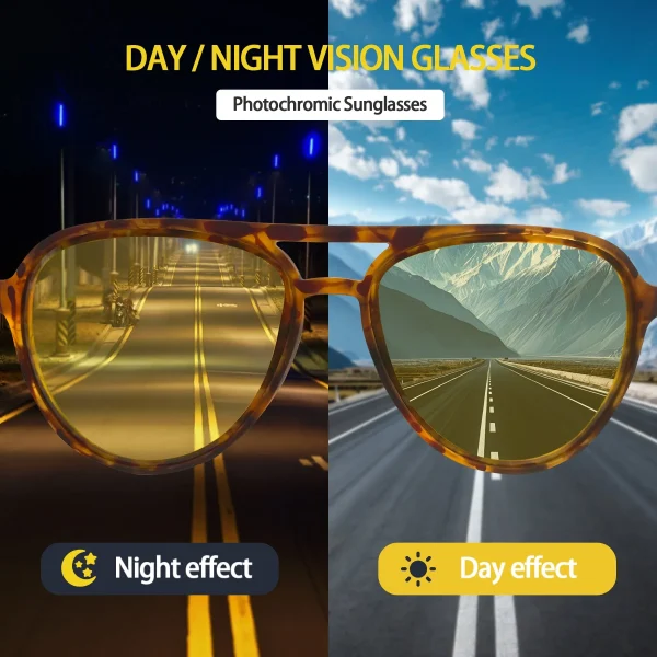 These advanced sports night vision sunglasses combine innovative photochromic and polarized lens technology to adapt to varying light conditions, making them perfect for both daily outings and high-performance activities. With a UV400 polarized coating, they effectively block hurtful UVA and UVB rays, perfect for driving and outdoor sports like cycling, running, and fishing. Ideal for men and women, they offer a stylish timeless aviator look combined with durability and performance, improving vision in low-light situations like foggy, rainy, or nighttime conditions.