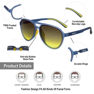 | Material: | TR90 frames, UV400 protection lenses, skin-friendly silicone nose pads. |