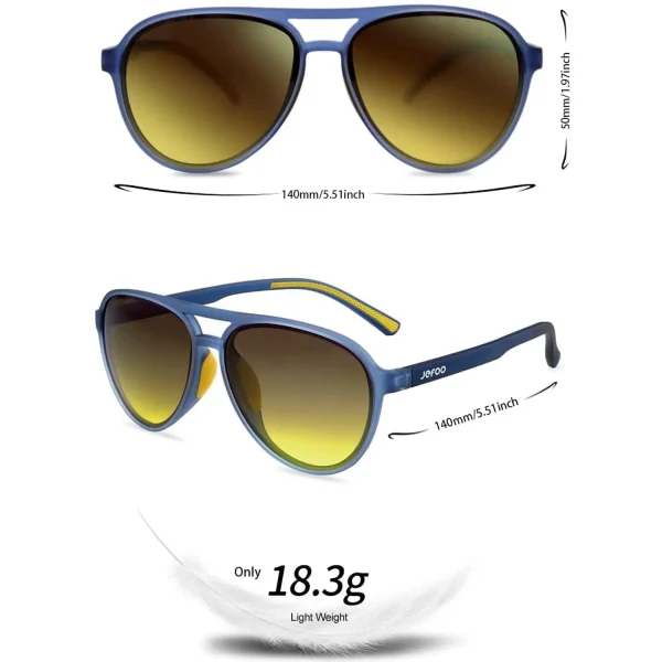 Blyzeo retro blue tinted aviator sunglasses adopt Navy blue frame and gradient tinted yellowish brown polarized lenses, drawing memories from the bravery and legacy of sailors. These aviators are combing deep, resilient spirit of naval history, offering a tribute to those who have served. The durable frames and TAC lenses provide superior eye protection and clarity. You could sense the courage and honor of the sea service by wearing these Blyzeo retro sunglasses. They are ideal for outdoor adventures, whose lasting symbol of the navy color get heritage and encourages you to face the world with the same fortitude as the sailors who have shaped our history.
